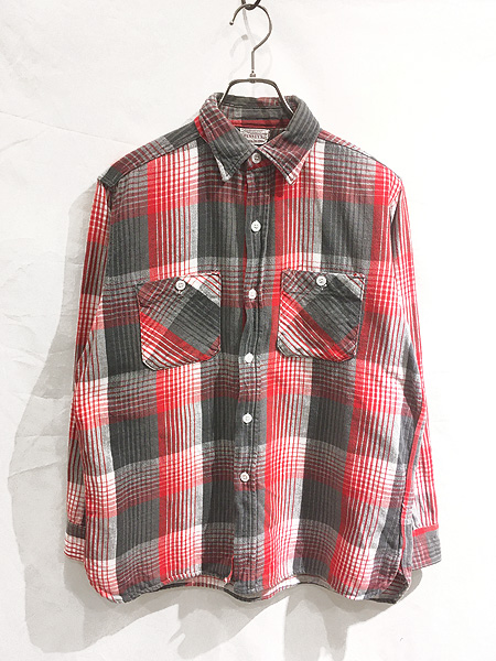 古着 50s Penney's マチ付 好配色 チェック ヘビー フランネル シャツ ヘビネル M