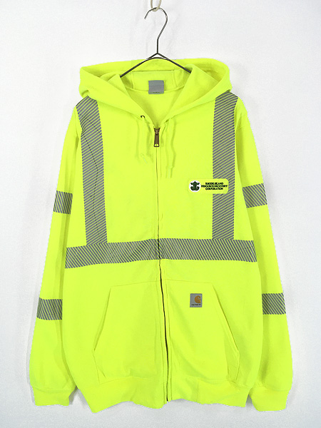 古着 Carhartt リフレクター ライン ネオン イエロー スウェット ジップ パーカー M