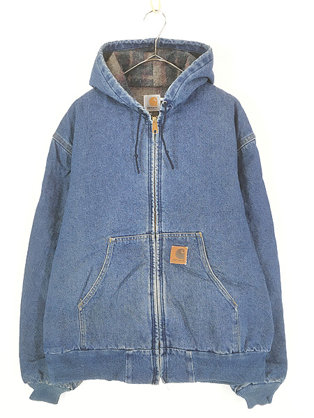 古着 80s- Carhartt 裏地 チェック ブランケット デニム アクティブ パーカー ジャケット L位