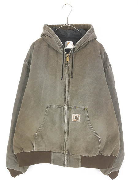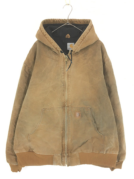 古着 90s- Carhartt フェード ダークブラウン ダック パデット アクティブ パーカー XL位
