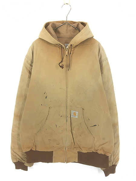古着 90s USA製 Carhartt 裏地 メッシュ ペンキ & フェード ブラウン ダック アクティブ パーカー ジャケット XL Tall