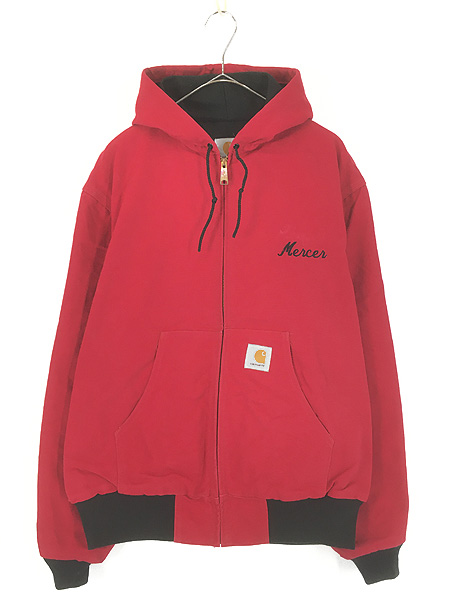 古着 90s- USA製 Carhartt 裏地 メッシュ RED レッド ダック アクティブ パーカー ジャケット L