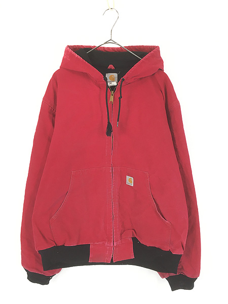 古着 90s- Carhartt レッド ダック 防寒 パデット アクティブ パーカー ジャケット L位