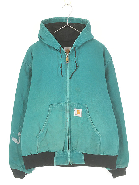 古着 80s- Carhartt 裏地 メッシュ アップルグリーン ダック アクティブ パーカー ジャケット L位