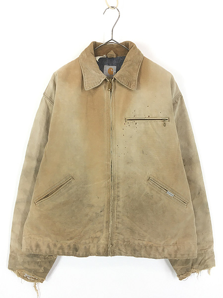 古着 80s USA様 Carhartt 裏地 ストライプ ブランケット フェード ブラウン ダック デトロイト ジャケット M位