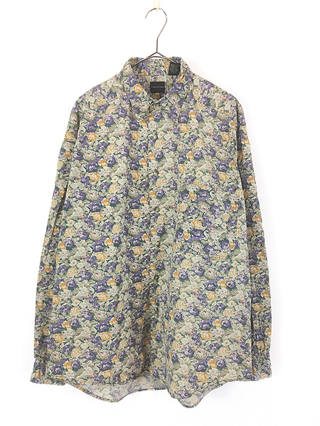 古着 90s STRUCTURE 花 フラワー アート 総柄 コットン シャツ L
