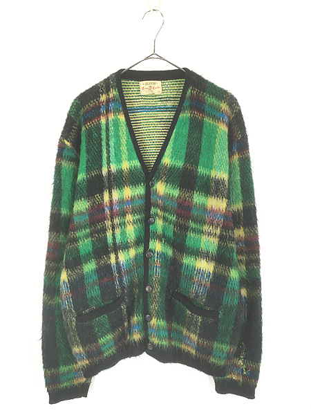 古着 60s ARROW Cum Laude カラフル チェック シャギー アクリル モヘア ウール ニット カーディガン XL
