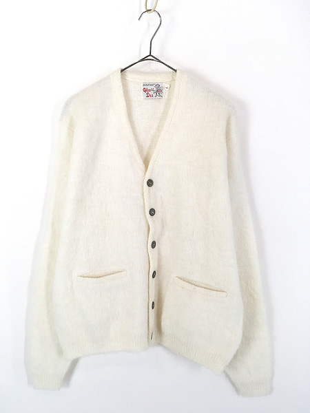 古着 60s Glen Dee 無地 ソリッド ホワイト シャギー アクリル モヘア ウール ニット カーディガン L