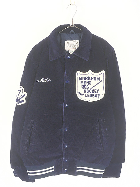 古着 80s Canada製 Siam Sportswear パデッド 襟付 コーデュロイ ホッケー ジャケット スタジャン 40