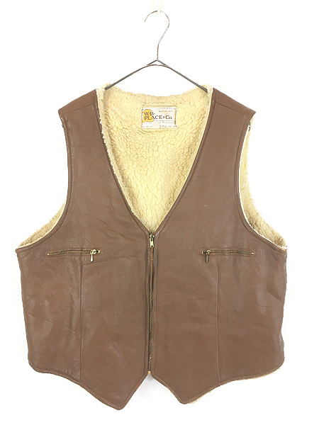 古着 80s USA製 W.B.PLACE & Co. ボア フリース ライナー 本革 レザー スポーツ ベスト 48