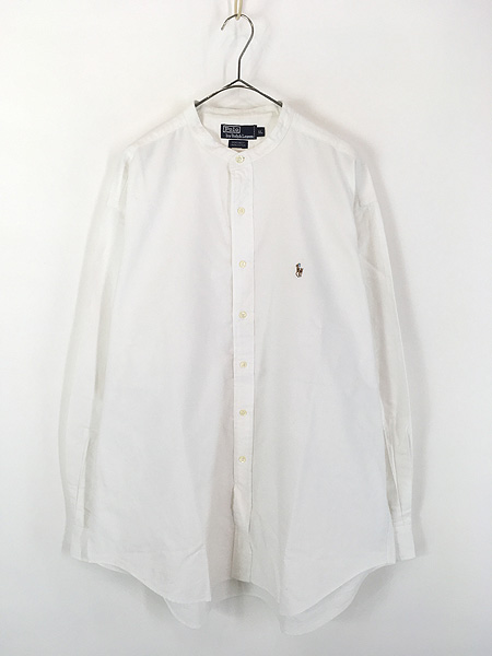 古着 Polo Ralph Lauren 「POSTBOY」 ワンポイント ソリッド バンドカラー シャツ ホワイト XL