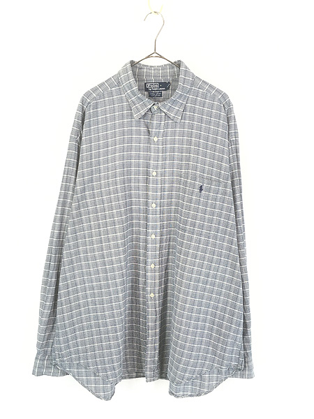 古着 Polo Ralph Lauren 「LOWELL SPORT」 ネイビー×ホワイト チェック ポケット付 シャツ XXL