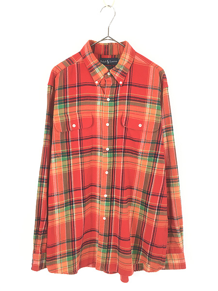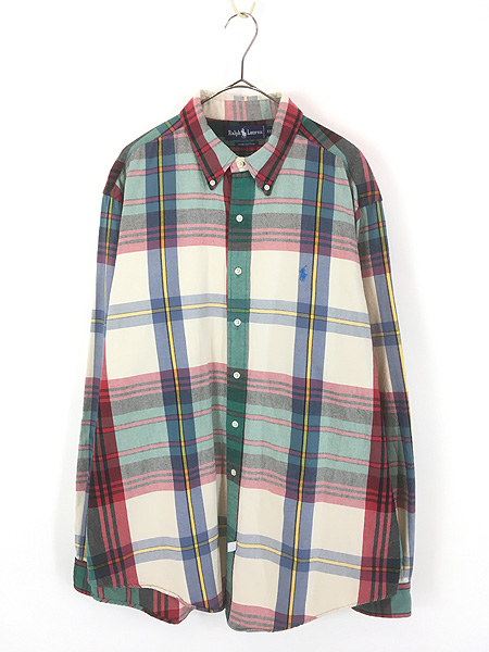 古着 90s Ralph Lauren カラフル マルチ チェック フランネル BD シャツ ネルシャツ XXL