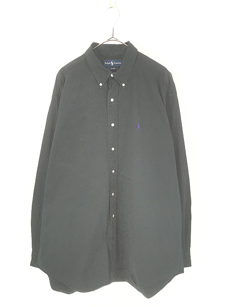 古着 90s Ralph Lauren 「BLAKE」 ワンポイント ソリッド BD シャツ ブラック XL