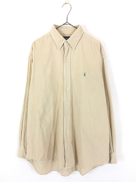 古着 90s Ralph Lauren 「BLAIRE」 ワンポイント ソリッド 細畝 コーデュロイ BD シャツ アイボリー L