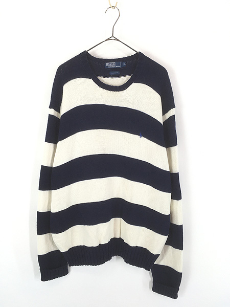 古着 Polo Ralph Lauren ネイビー×ホワイト ワイド ボーダー コットン ニット セーター XL