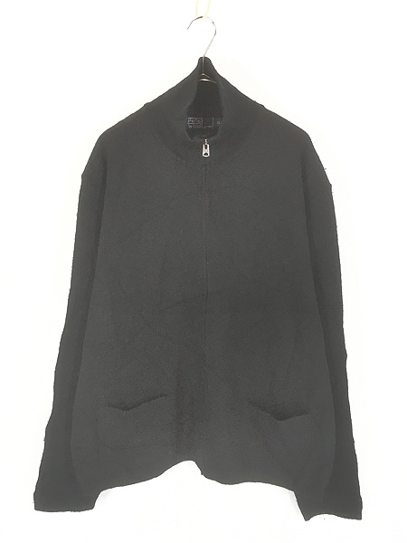古着 90s Polo Ralph Lauren 無地 プレーン ソリッド ポケット付 フルジップ ニット カーディガン ブラック XL