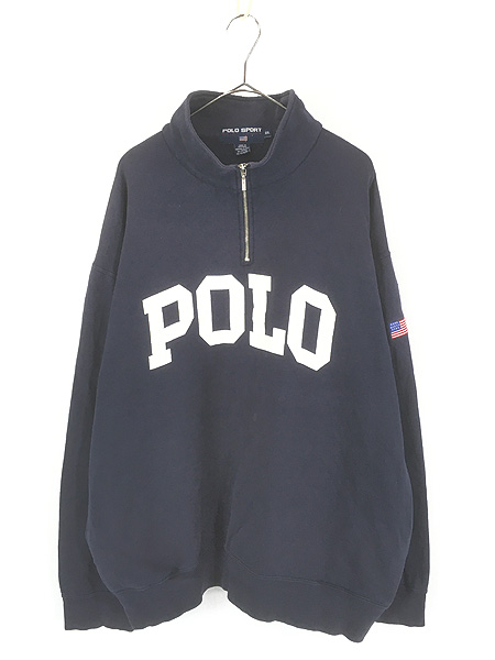 古着 90s POLO SPORT Ralph Lauren 「POLO」 プリント ハーフジップ ハイネック スウェット トレーナー XXL