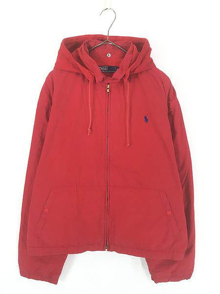 古着 90s Polo Ralph Lauren 裏地 フリース ワンポイント ソリッド 2way コットン スウィング トップ ジャケット レッド XL