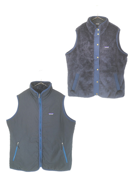 古着 19s Patagonia もこもこ フリース × ソフト ポリエステル シェル リバーシブル ベスト ネイビー XL位