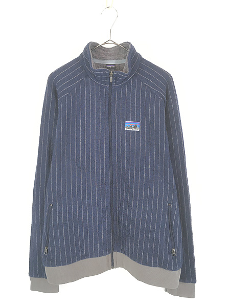 古着 Patagonia 白タグ チョーク ストライプ ウール ニット フリース ジップ カーディガン L位