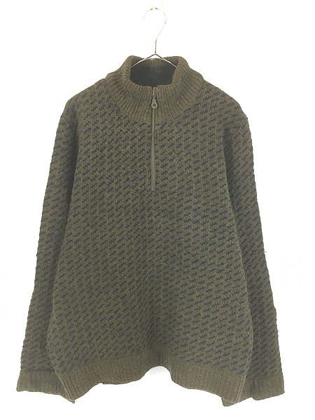 古着 00s ノルウェー製 LL Bean ハイネック ハーフジップ バーズアイ ヘビー ウール ニット セーター イエロー M