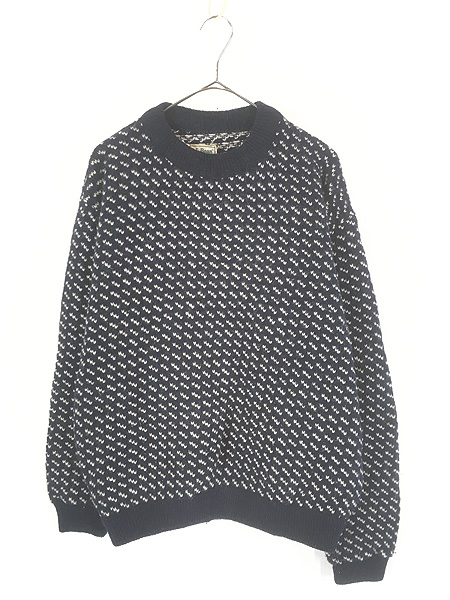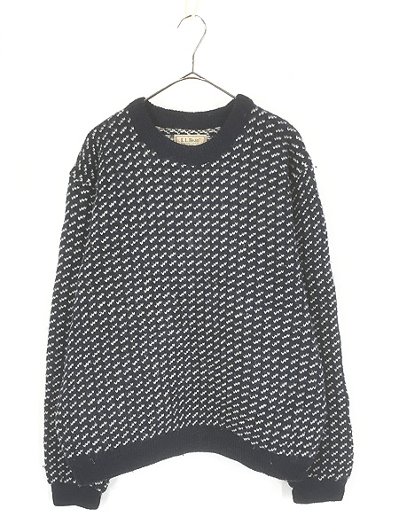 古着 80s ノルウェー製 LL Bean ネイビー×ホワイト バーズアイ ヘビー ウール ニット セーター XL