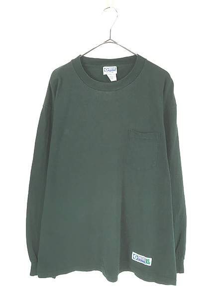古着 90s USA製 DISCUS 無地 ソリッド 100%コットン ポケット付 長袖 Tシャツ ロンT ポケT グリーン XL