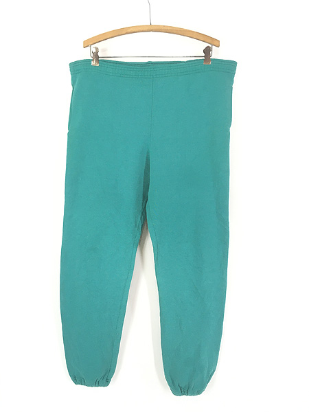古着 90s USA製 Russell 無地 プレーン ポケット付 スウェット パンツ エメラルド L
