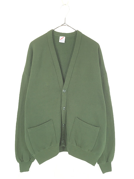 古着 80s USA製 Jerzees 無地 プレーン パチポケ オールド スウェット カーディガン オリーブ OSFA