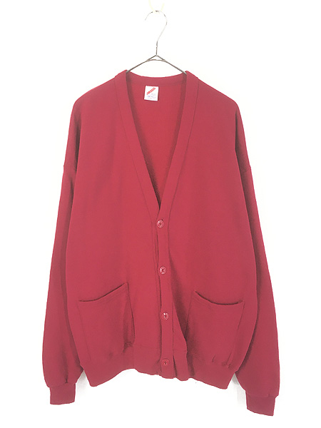 古着 80s USA製 Jerzees 無地 プレーン パチポケ オールド スウェット カーディガン エンジ OSFA ミント!!