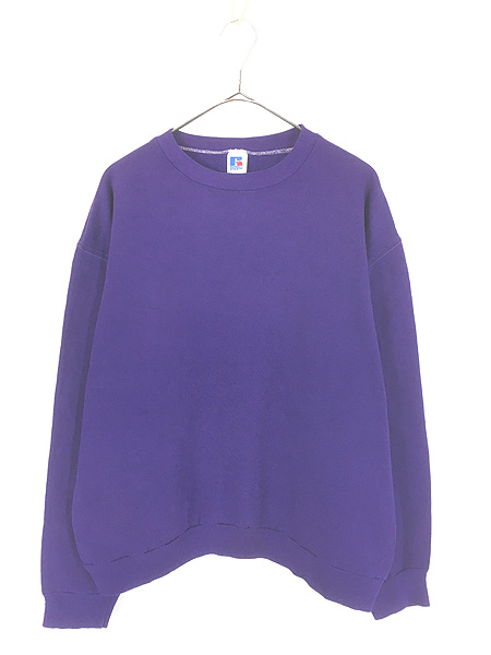 古着 80s USA製 Russell ピンク ステッチ 無地 プレーン セットイン スウェット トレーナー パープル L