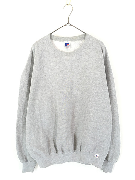 古着 90s USA製 Russell 無地 プレーン 前V セットイン スウェット トレーナー グレー XXL