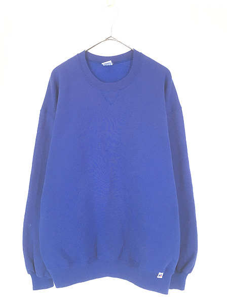 古着 90s USA製 Russell 無地 プレーン 前V セットイン スウェット トレーナー ブルー XL
