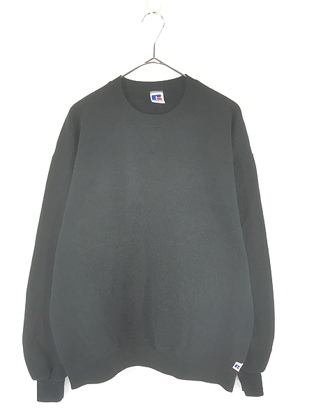 古着 90s USA製 Russell 無地 プレーン 前V セットイン スウェット トレーナー ブラック L