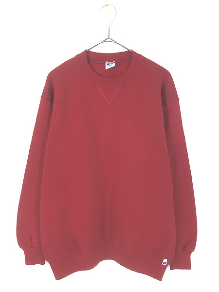 古着 90s USA製 Russell 無地 プレーン 前V セットイン スウェット トレーナー ダークレッド L