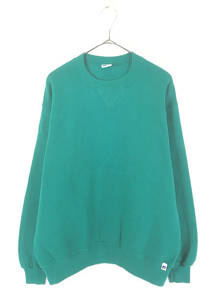 古着 90s USA製 Russell 無地 プレーン 前V セットイン スウェット トレーナー エメラルドグリーン L
