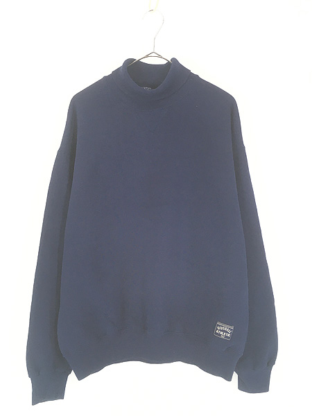 古着 90s USA製 Russell 無地 プレーン 前V セットイン タートルネック スウェット トレーナー ネイビー L