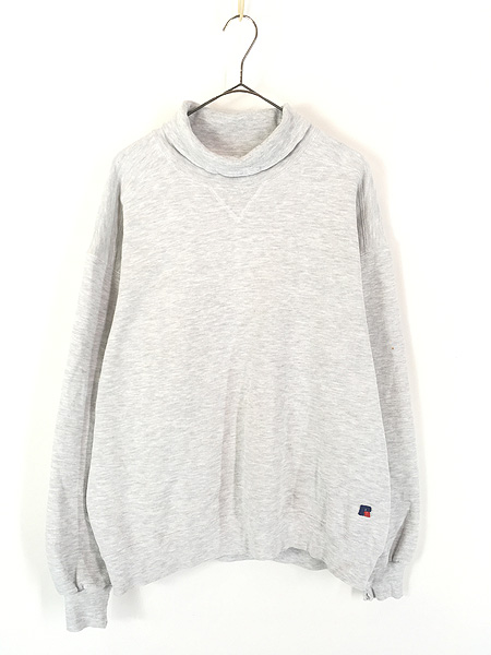 古着 90s USA製 Russell High Cotton 無地 プレーン 前V セットイン タートルネック ヘビー スウェット トレーナー グレー L
