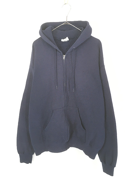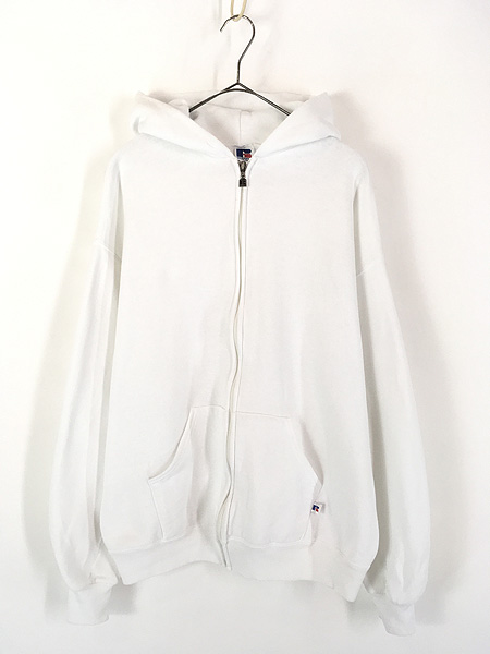 古着 90s USA製 Russell 無地 プレーン セットイン スウェット ジップ パーカー ホワイト L
