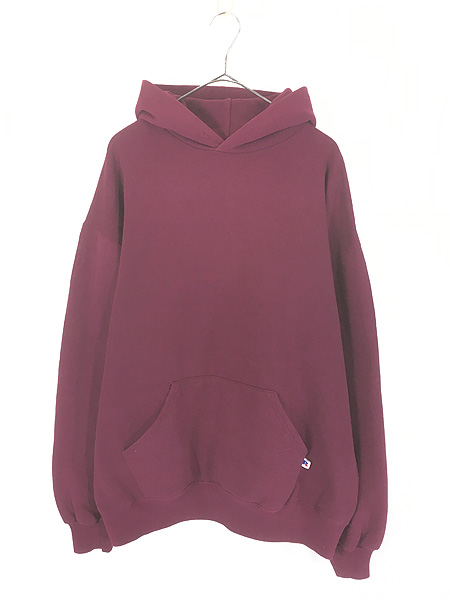 古着 90s USA製 Russell 無地 プレーン セットイン スウェット パーカー ワイン XL