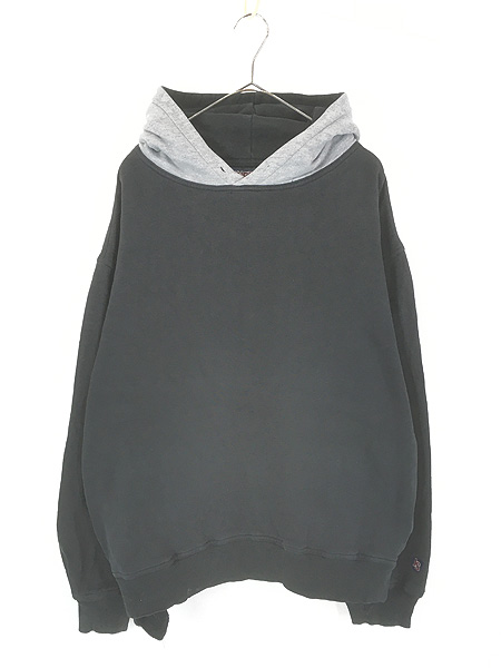 古着 90s Russell 無地 プレーン セットイン スウェット パーカー ブラック L