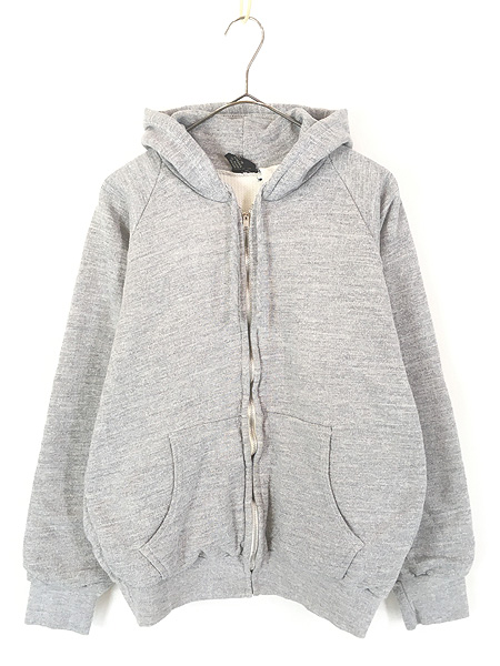 古着 70-80s ルーマニア製 SMITTY'S 無地 プレーン 裏地サーマル Wフェイス スウェット ジップ パーカー グレー L