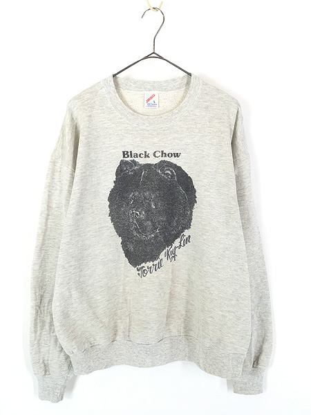 古着 80-90s USA製 犬 ブラック チャウチャウ アニマル スウェット トレーナー L 古着