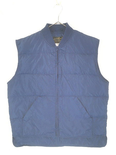 古着 80s Eddie Bauer 軽量 ナイロン シェル ボリューム ダウン ベスト ネイビー L