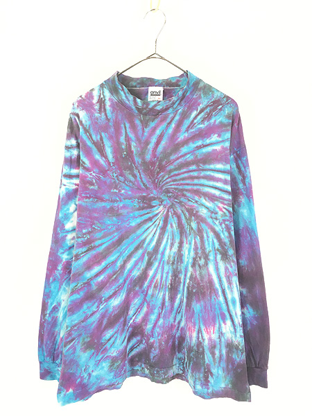 古着 90s USA製 うずまき タイダイ アート モックネック 長袖 Tシャツ ロンT XL