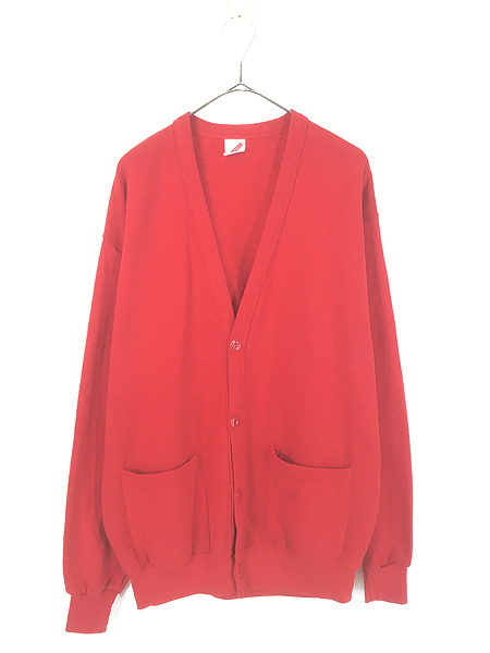 古着 80s USA製 Jerzees 無地 プレーン パチポケ オールド スウェット カーディガン レッド OSFA ミント!!