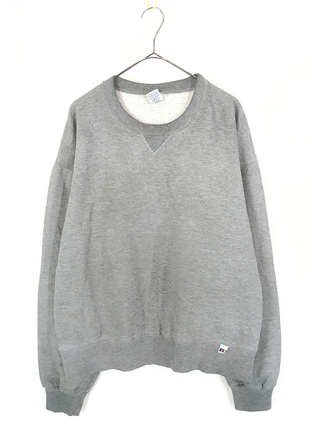古着 90s Russell 無地 プレーン 前V セットイン スウェット トレーナー グレー L
