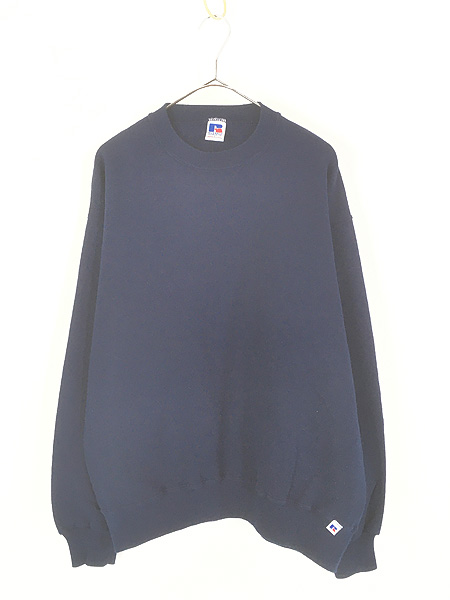 古着 90s USA製 Russell 無地 プレーン 前V セットイン スウェット トレーナー ネイビー L