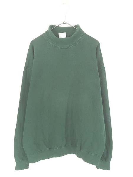 古着 90s USA製 PLUMA 無地 プレーン ヘビー ウェイト タートルネック スウェット トレーナー グリーン L